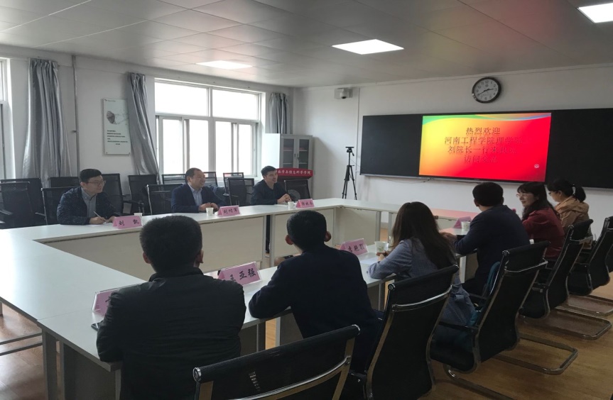 10月6日下午,河南工程学院理学院副院长(主持工作)刘付军、副院长刘凯、数学与应用数学系主任郭晓永一行来数学与信息科学学院交流学习,数学与信息科学学院院长刘淳安、副院长王爱丽、信息与计算科学系以及统计系系主任王亚强、高磊、胡江红、李艳颖等在思贤楼424会议室与来访人员进行了交流,会议由副院长王爱丽主持。