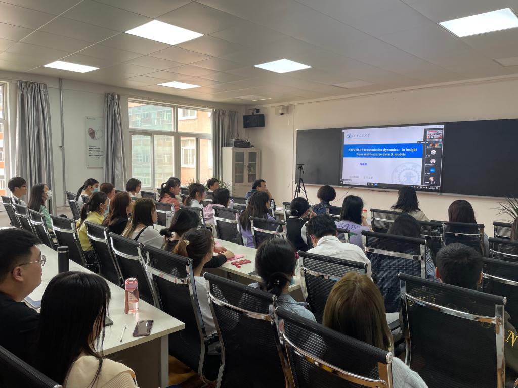 肖老师针对新冠肺炎疫情在全球范围内爆发以来,许多国家反复多次爆发疫情,同时伴随着封城、解封、再封城和再解封等,讲解了如何通过建立数学模型预测疫情和评估控制策略的有效性。报告中介绍了与传染病相关的多源数据,以及如何将多源数据与模型进行拟合以对新冠肺炎疫情进行早期预测和长期预测,如何评估控制策略的效果,如何研究医疗资源的有限性以及媒体报道对疾病传播与控制的影响等。此外,报告介绍了如何将网络动力学模型与人口流动大数据结合,研究复工和人口流动对可能爆发第二波疫情的影响。肖老师的报告高屋建瓴,深入浅出,参会师生受益匪浅。