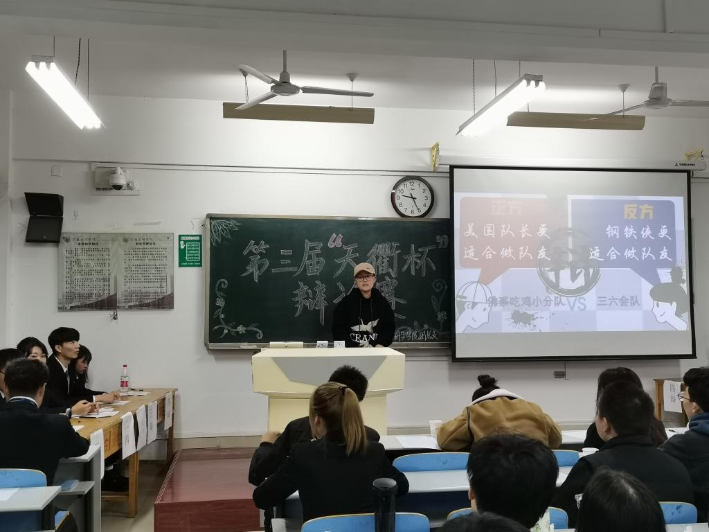 丰富同学们课余生活,活跃校园气氛开拓学生思想,体现大学生朝气蓬勃、积极向上的精神状态,培养发掘辩论人才10月26,27日晚,我院在思贤楼326,328教室举办了第三届天衢杯”辩论赛初赛。参加此次活动的有我院辩论队队员,团总支、学生会部分成员和2019级,2020级部分学生。