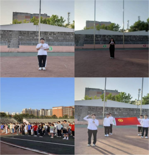 早晨六点半,旗仪式正式开始。国旗护卫队步伐铿锵有力整齐划一。在庄严的国歌声中,五星红旗冉冉升起。十四运会和残特奥会省级优秀志愿者2020级统计学1班学生曹红宝以《高瞻远瞩,以学促学》为题做了国旗下演讲,号召全体同学们在奉献中成长,立志成才。2019级数学与应用数学2班团支书杜雯为大家讲授《忆百年之团史,创青春之华章》主题微团课,带领大家回顾了百年团史,激励青年学子用奋斗书写青春华章。团员代表韩钰馨带领大家重温入团誓词唤起了每一位团员的不辱使命、永葆先进的团员意识。团日活动在青春激昂的团歌声中落下帷幕。李萍在总结中讲到,希望同学们树立坚定理想信念,练就过硬本领,严守学校纪律,强化使命担当。