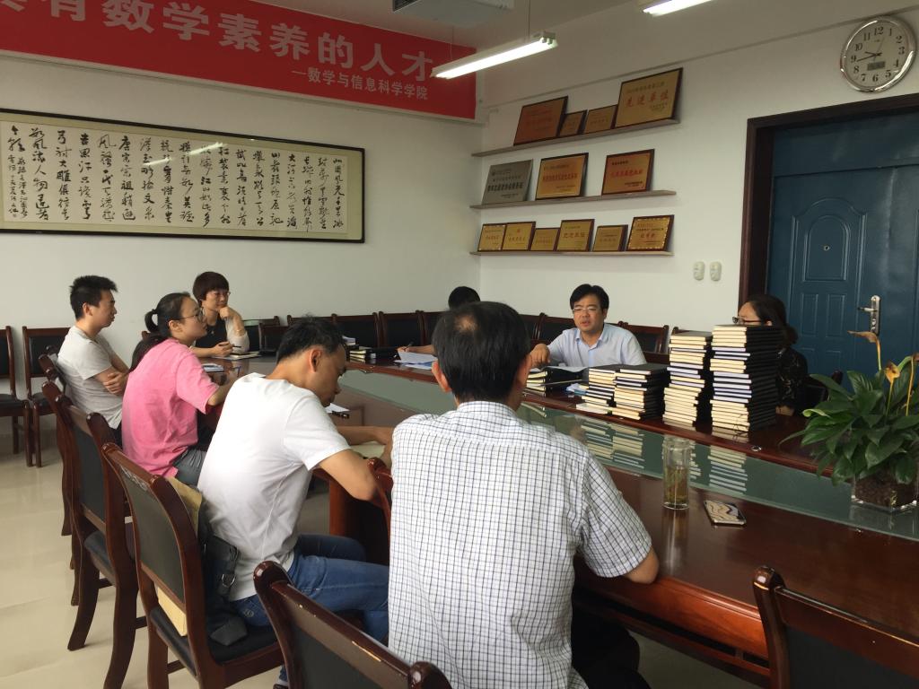 为落实全面从严治党要求,进一步促进基层党建工作科学化、规范化、制度化,根据《腾博官网诚信为本专业服务党建工作考核办法(试行)》(宝文理院党字【2018】8号),7月7日上午,校第一检查组成员,组织部副部长郭理想、纪检员王彦平一行两人第二次深入数学与信息科学学院检查督导2018年第二季度党建学习教育。院党总支书记郝满义、副书记王欢、教工及学生各党支部书记参加了会议。