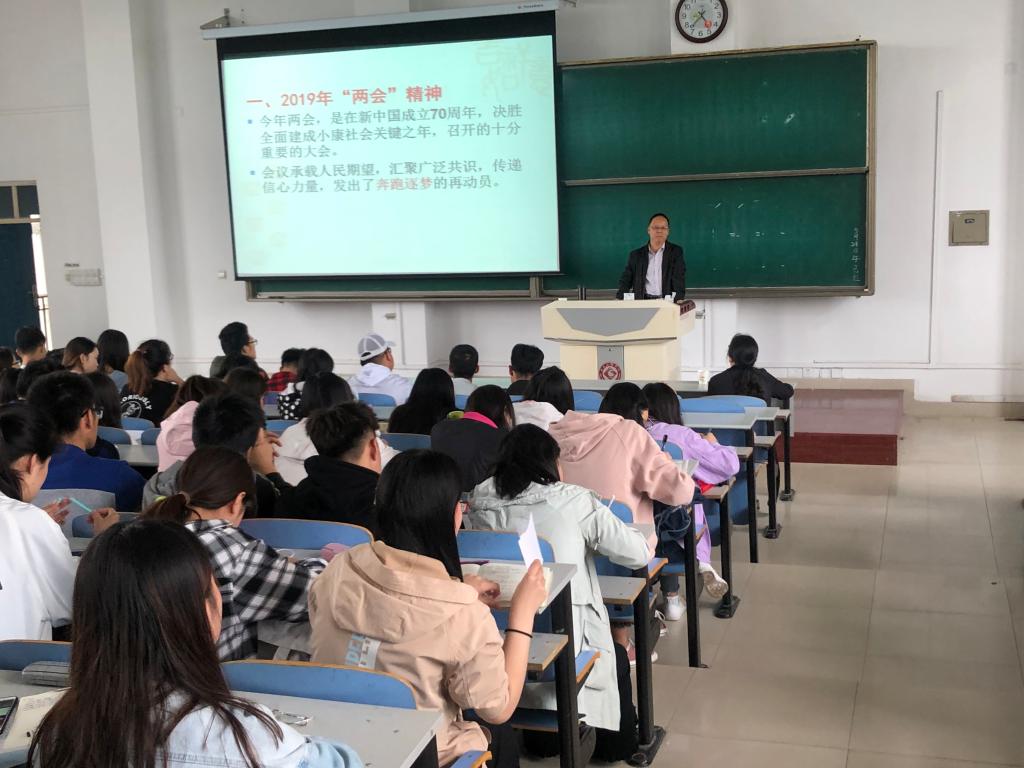 529日下午,学院在思贤楼420教室举办2018年“两会”精神宣讲会,邀请学校党委委员、党委统战部部长、“两会”宣讲团成员彭志启教授作了题为《2019“两会”和全国教育大会精神统一思想和行动》的专题报告。会议由学院党总支书记郝满义主持,学生辅导员、全体学生党员和入党积极分子参加了宣讲会。