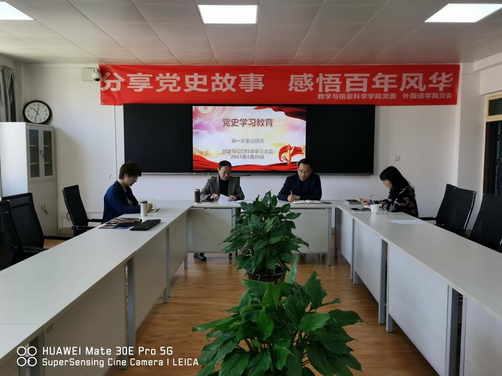 为进一步落实的党史学习教育,根据《数学与信息科学学院党史学习教育学习计划》安排,4月14日、28日,数学与信息科学学院中心组、教工党支部、学生党支部分别组织开展了“学史明理”专题研讨、专题党课、“百年党史我来答”知识竞赛活动和“聆听党史故事 感悟百年风华”主题党日活动,用实际行动推进党史学习教育深入开展。