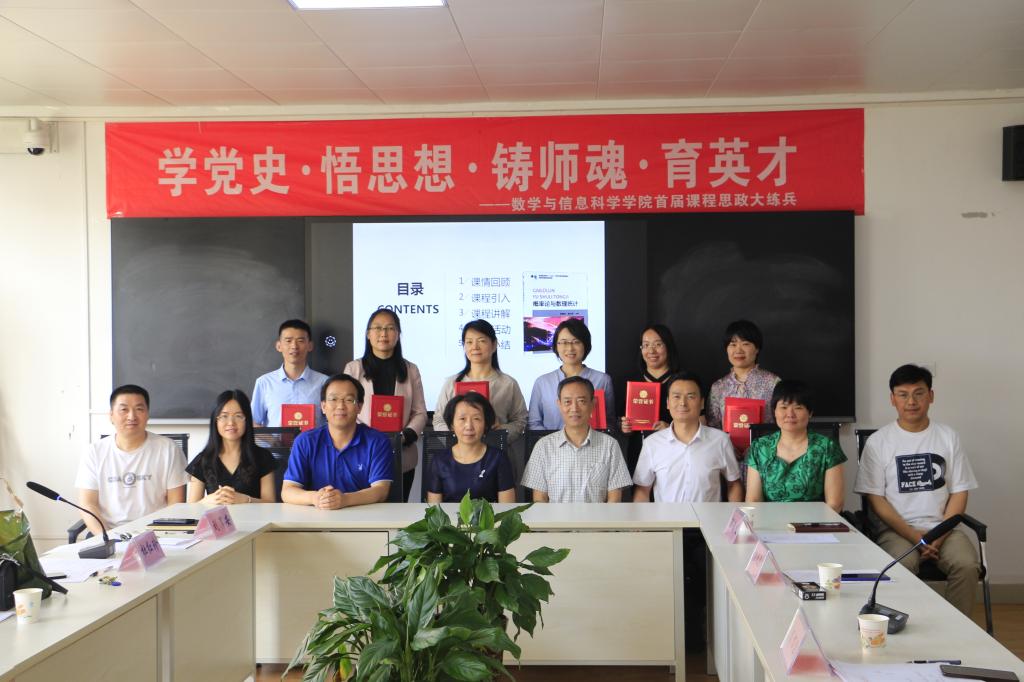 为深入贯彻落实习近平总书记在党史学习教育动员大会上的重要讲话精神,用习近平新时代中国特色社会主义思想铸魂育人,高质量做好新时代学校课程思政建设,2021年5月26日,数学与信息科学学院在思贤楼424会议室举办了“学党史、悟思想、铸师魂、育英才”系列活动一:首届课程思政大练兵讲课竞赛。比赛由数学与信息科学学院副院长杜红珍主持。