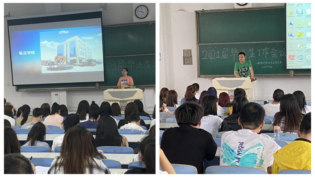 5月14日下午,我院分别在思贤楼420、408、426教室召开数学与应用数学专业、信息与计算科学专业、统计学专业2021届毕业生工作会议。数学与信息科学学院党委副书记王欢、副院长杜红珍、辅导员张文婧、王耀兰、班主任王向锋、毕业生实习指导老师邢星、2014级优秀毕业生张玉洁及2017级全体毕业生参加了会议。