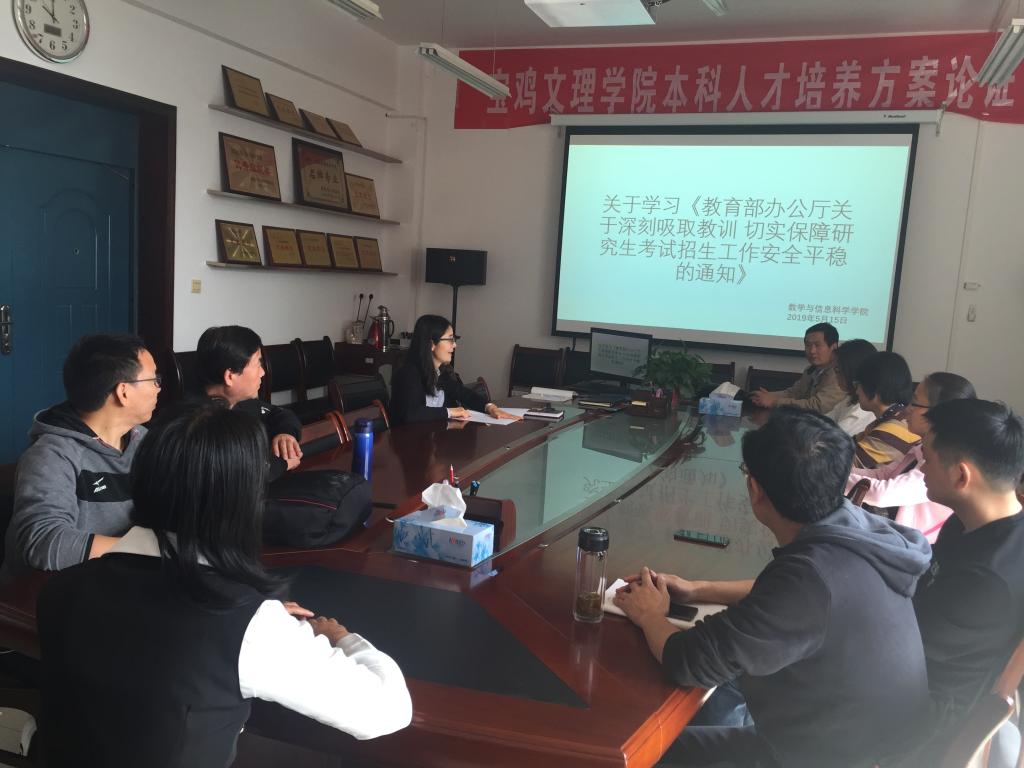 数信院召开关于《切实保障研究生考试招生工作安全平稳的通知》的学习会议