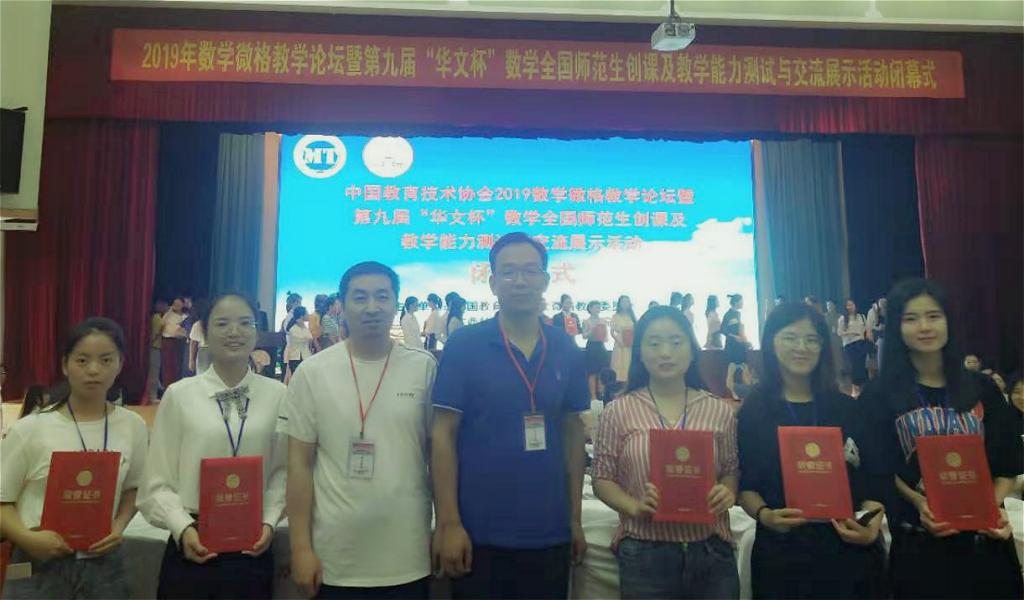 9月26日至29日,由中国教育技术协会微格教学专业委员会主办的2019年数学微格教学论坛暨第九届“华文杯”数学全国师范生教学能力测试与交流展示活动在广西师范大学举行。经过评选,数学与信息科学学院选派的5名选手李娇娇雒甜赵婷钟天琦王洁取得1个一等奖、3个二等奖5个三等奖和1个优秀奖的优异成绩。