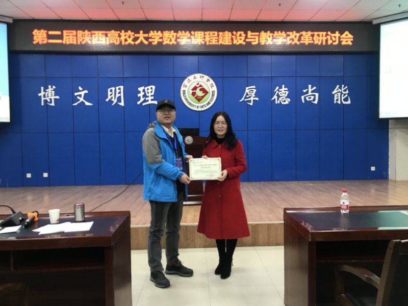 11月7日至8日,第二届陕西高校大学数学课程建设与教学改革研讨会在我校甘棠厅召开,副校长杨子元出席会议并致开幕词,数学与信息科学学院院长刘淳安主持了开幕式。