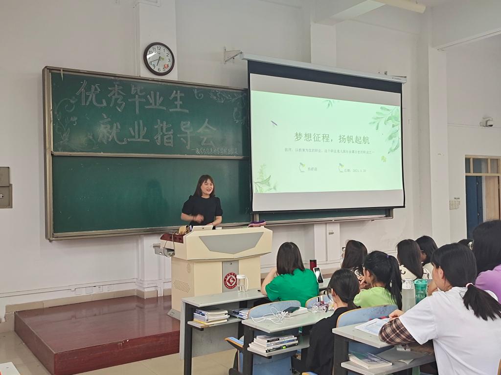 5月20日,我院邀请优秀校友,宝鸡市第一中学教师杨舒涵为2018级师范类学生做“梦想征程,扬帆起航”就业指导讲座,辅导员王耀兰,2018级数学与应用数学专业全体学生参加了本次讲座。