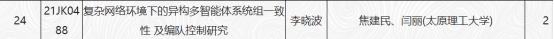 近日,陕西省教育厅发布了《关于印发2021年度科学研究计划的通知》(陕教[2021]96号),我校共获批28项。立项项目分为两种类型:专项科学研究计划项目26项(自然科学专项项目19项、人文社科专项项目7项),资助经费45万元;青年创新团队建设科研计划项目2项,资助经费8万元。我院获批自然科学专项2项,资助经费4万元。