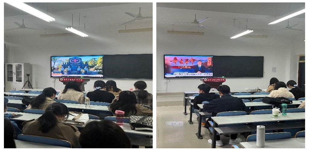 11月1日,2021级全体研究生同学在思贤楼423一起观看了烈士纪念日纪念实况活动视频以及纪念辛亥革命110周年大会实况活动视频。通过视频缅怀革命先烈的英勇事迹和崇高精神,学习习近平总书记重要讲话精神,重温辛亥革命推动思想解放与社会变革的重要意义。