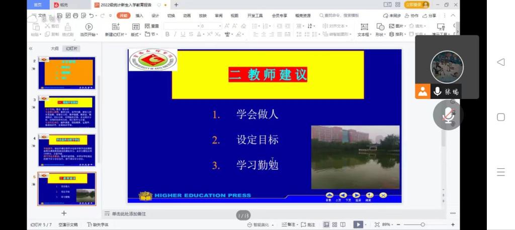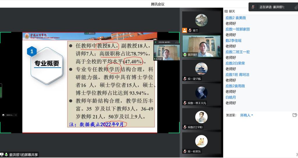 9月15日下午,2022级研究生“云端”见面会拉开了本次入学教育活动的序幕。研究生秘书樊玥、辅导员秦兰分别向2022级研究生讲解了学院专业和导师概况,帮助新生初步了解我院科研情况与师资力量,为接下来的“导师互选”打好基础。