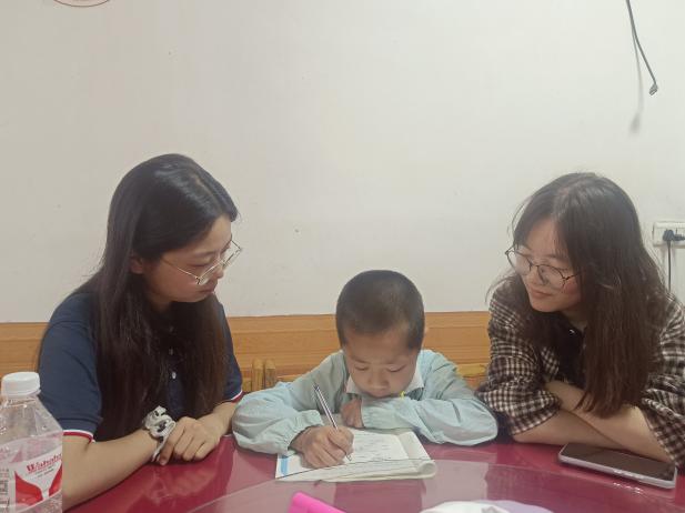 实践团队到达太白县鹦鸽镇后,在鹦鸽镇中心小学举行了腾博官网诚信为本专业服务大学生暑期文化科技卫生“三下乡”社会实践基地挂牌仪式。实践团队成员走进村民家中,通过填写调查问卷、回访等方式,深入了解了当地留守儿童的发展现状,为更好推进关爱留守儿童行动提供详实的数据支持。活动开展过程中,社会实践团队成员运用创意教学方法,根据每个孩子的实际情况并结合孩子们的意愿制定了一对一帮扶计划,指导孩子们进行专业课学习,引导孩子们学习垃圾分类、自我安全防护措施,参与手工制作,开展户外体育锻炼。