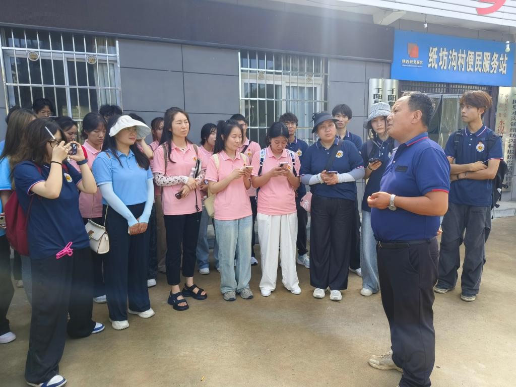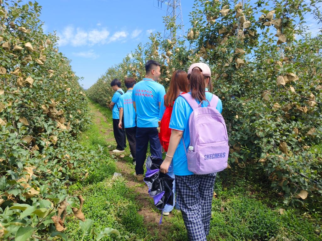 在纸坊沟村,队员们参观了电商直播间与矮砧苹果科技示范园。驻村干部刘晓鑫通过座谈会分享了驻村帮扶工作开展情况及我校乡村振兴定点帮扶成果,介绍了电商助力乡村产业融合情况,解答了乡村教育、产业振兴等问题。