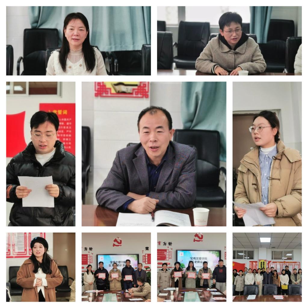 12月22日,我校教育硕士教学实践基地—宝鸡石油中学为2022级学科教学11名教育硕士研究生举行实习总结和欢送会。石油中学副校长张卫、腾博官网诚信为本专业服务数学与信息科学学院教师刘素红、张亚敏、实习指导教师代表以及全体实习研究生参加会议,会议由石油中学教导主任薛安永主持。